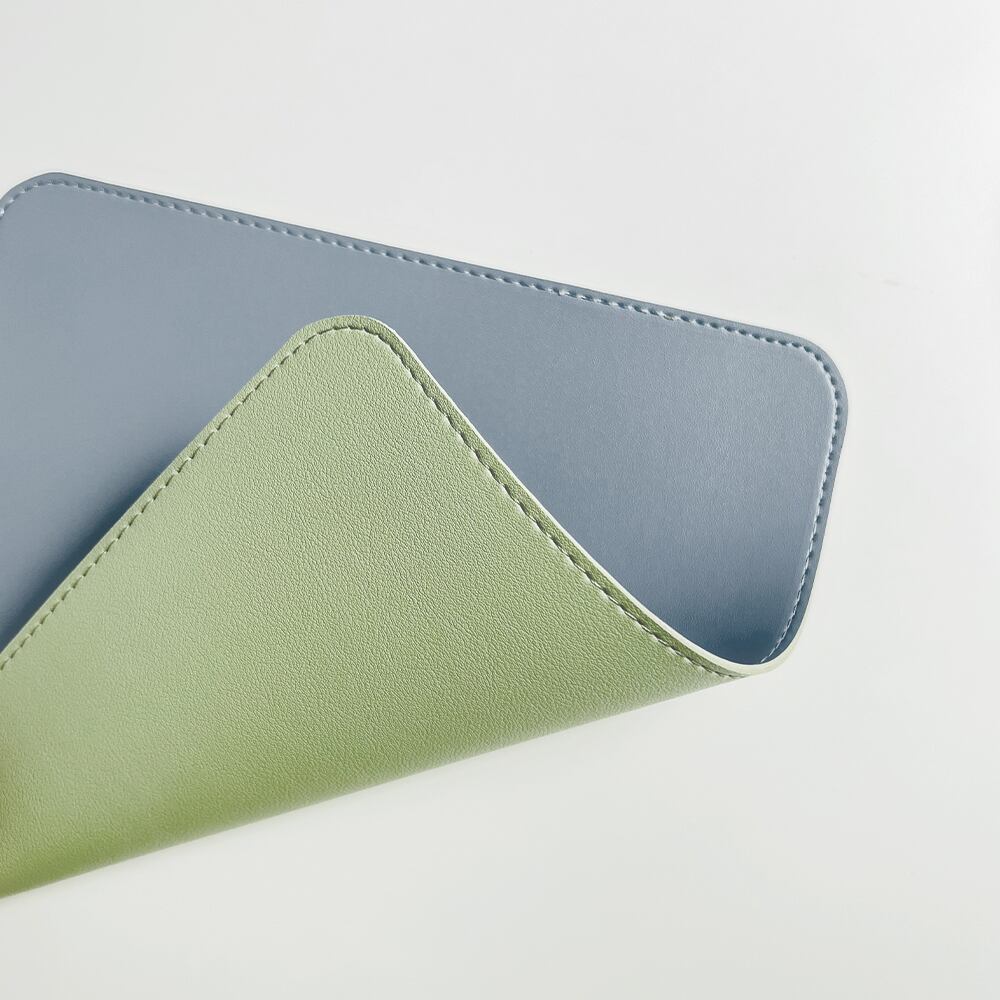 大判・両面リバーシブル プレミアムレザー風マウスパッド スモーキーブルー&グリーン